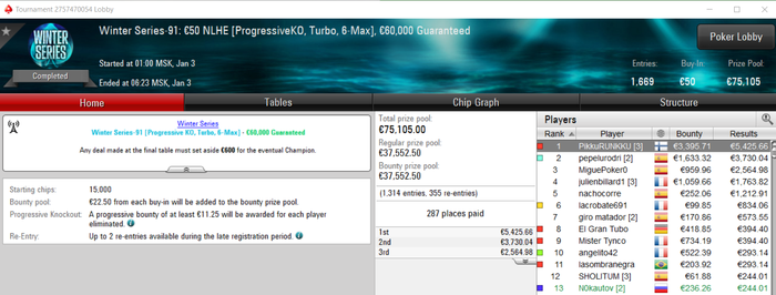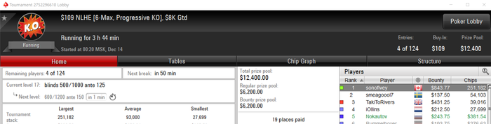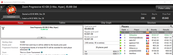 newreg13, а вообще так если хорошо подумать, то чем выше поднимаешься по лимитам, то отношение к этим электронным деньгам как к фантикам, что неправильно. К примеру, на 2 входа которые я сделал, в случае не попадания в деньги, я теряю 1060 баксов, а это как по мне очень много, при том что я живу в Москве, а что уж говорить про жителей маленьких городов. По факту один вход это например как покупка последних apple watch или новый телевизор или монитор 4к. А два входа это последний айфон или новый комп. И при этом при всем идёшь в магаз и жопишь себе купить что то за 5к, типа дорого. Короче надо пересмотреть своё видение и как то жить дальше. Как я и писал ранее - мне не нравятся эти дорогие покатушки, но я по прежнему продолжаю в них играть, и что с этим делать я не в курсе. Видимо это стадия лудомании такая 😅 Посещают мысли сесть и откатать недорогую сессию, но садишься и смотришь такой: идёт рега в 215 билдер, такой ну ладно зайду и тут понеслась, низы отрезал и погнал катать дорогую. И так каждый раз. Был период, когда я опускался и играл в турниры по баксу, это когда я в июле прошлого года выходил из состава фанфарм и катал от себя, но я там очень быстро поднялся и к сентябрю уже подгружал до 55 баксов. Так как прямо апнуло по низам, может скилл, но это не точно. Чтоб я сейчас подгрузил что то за бакс, не уверен что захочу играть в нем и буду искать удобный случай, чтобы выставиться и закончить его. Есть мысли перейти на утро, но пока нет желания, так как невозможно смотреть на выплаты за первое место в турнирах по 50 и 100 баксов, где за победу дают 1000 баксов. Всю свою карьеру я играл килополяны, хоть это и диспово - сильно не закатывался, везло. Раньше гриндил 1000 турниров в месяц и чувствовал себя хорошо. Сейчас максимум 500 и как выжатый лимон. Либо старость, либо тренировки выжимают из меня все силы и очень мало остаётся на игру. Сам пока не разобрался. Завтра мы с нашими ребятами из фанфарма собираемся на предновогодний корпоратив и сняли дом. Надеемся как следует отдохнуть. Ладно, буду заканчивать писанину. Все удачи за столами и желаю занести себе на хороший подарок на Новый год.