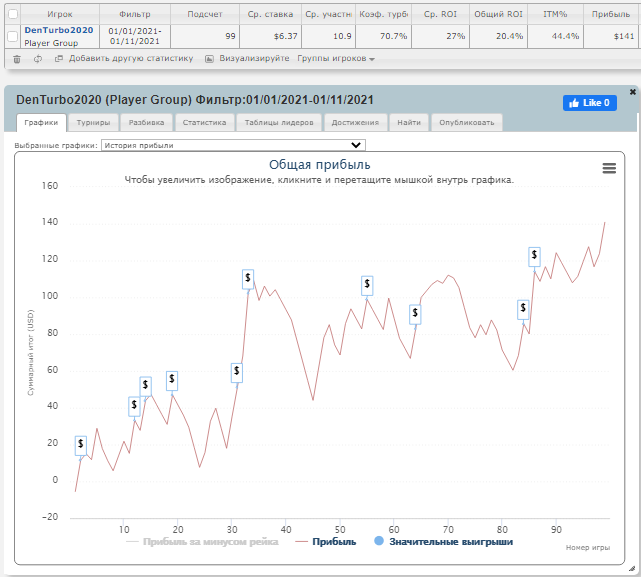 ABI = 6,3$ / Турниров: 99 / Профит: +141$ - best week! King(Supernova): 239/100000SP(0,2%)