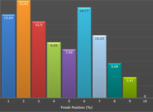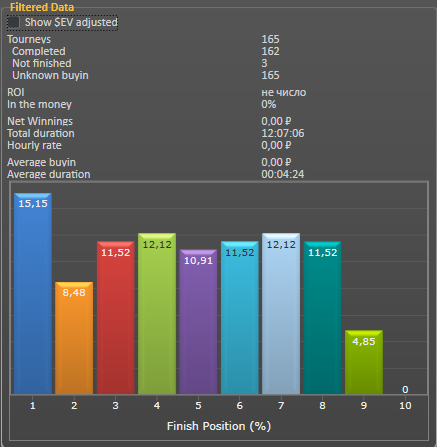 По дистанции отстаю от графика, так что пришлось брать качеством Последнюю сессию попробовал добавить агрессии, продавливал на бабблах, активно рестилил, баррелил и т.д. Переапался опять, конечно, но как выглядит график EV bb/100 в целом мне нравится. Да распределение призовых мест за последние два дня - совсем другое дело.