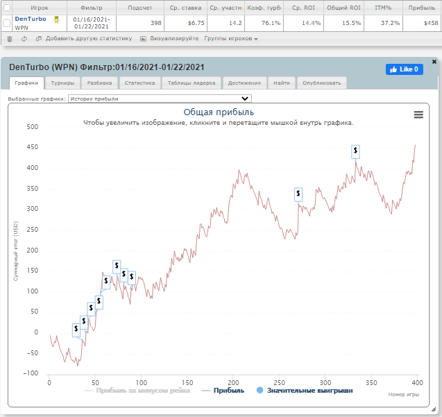 Профит по кассе:+312$(бэст монс! ) Турниров: 527 / АБИ = 4,9$