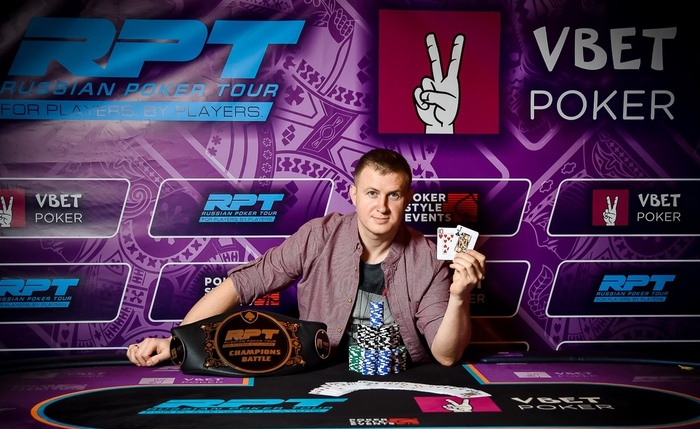 Знакомьтесь, это Иван Бабарико - триумфатор прошлой Битвы Чемпионов, которая состоялась в рамках предыдущего Гранд Финала За первое место он забрал приз $5,000 и фирменный пояс чемпиона. Иван родом из Минска и в покер играет более 11 лет. С его слов, переломным моментом для него стал крупный занос на RPT в 2012 году. Он отобрался в Mega Main Event всего за €2 и выиграл более €28,000 за третье место. С тех пор, как сказал Иван, его жизнью стал только покер и семья. Несмотря на то, что наш герой больше любит онлайн MTT, иногда он посещает и живые серии, как случилось в этот раз.