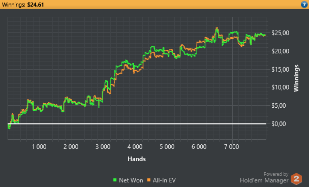 Ну судя по графику не такой уж ты и 0 рег бро , примерно 6,5евбб/100 есть , просто поймал такой ран что плохо складывается . В такие моменты главное не тильтовать и продолжать играть в свой гейм , и за недобором последует свинский перебор ) Не падай духом , Гл !