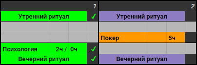 Обрати внимание, что я в планах на месяц задал только дела и примерно затрачиваемое на них кол-во часов. При этом также есть определенный диапазон во времени - есть минимум, а есть максимум, что также дает пространство для маневра. Хочу 5 часов отыграю днем, захочу - вечером. Могу отыграть и 4, ничего страшного не произойдет, а если "не будет стоять" на игру, займусь чем-нибудь другим