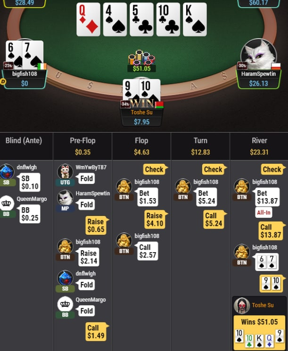 Во многих не видно шд, но по ситуации и без того ясно, что если я катчу с такой рукой на такой экшн и фишки едут ко мне, то ребята сходят с ума. К слову, шд действительно лучше бы не видеть, так как оно превосходит любые ожидания.