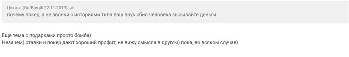 У меня один вопрос к ТСу. Не мучает ли тебя хоть малюсенькая мысль о том, что ты приходя в общество (а этот форум, я считаю обществом).....что ты, сученок, не имеешь никакого морального права, писать посты ни о чем другом , кроме о том, как ты искренне раскаивавшийся и соболезнуешь тем детям, родителям, чьих родных ты загубил. И все что ты планируешь заработать покером , ты с чистой совестью и душой будешь жертвовать на борьбу с наркотой. НЕТ БЛЯДЬ, НЕТ!!!! Ты же пишешь веселые истории. Как тебе было весело и круто жилось в это время. И не особо тебя парит то, что было в твоей гнилой жизни. А просто хочу в покерок шпилить, да бабло за шконку складывать.