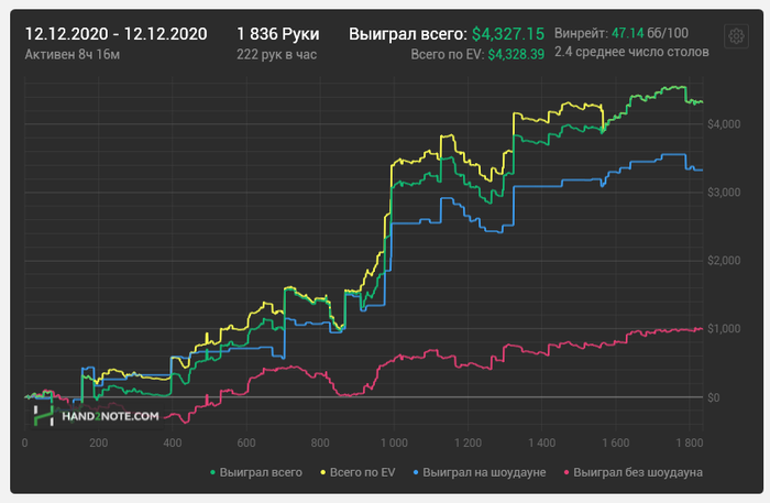 хороший ран + плохое состояние = пропускаешь тонкие споты, где-то играешь не в ту сторону, промахиваешься сайзами, но в итоге все равно выигрываешь, обв гораздо меньше, чем в А-гейме и чем мог бы даже в этой сессии, потому что сам много руинишь