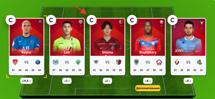DimaPit1980, Выбираешь игрока на которого рассчитываешь больше всего, и он получит дополнительный бонус очков
