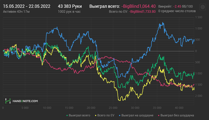 С 15к до 33к рук я считаю, что играл в свою идеальную игру, с легкими ошибками. Последние 6к рук были вчера и они были ужасными, сегодня посмотрел раздачи и ошалел от своих действий.