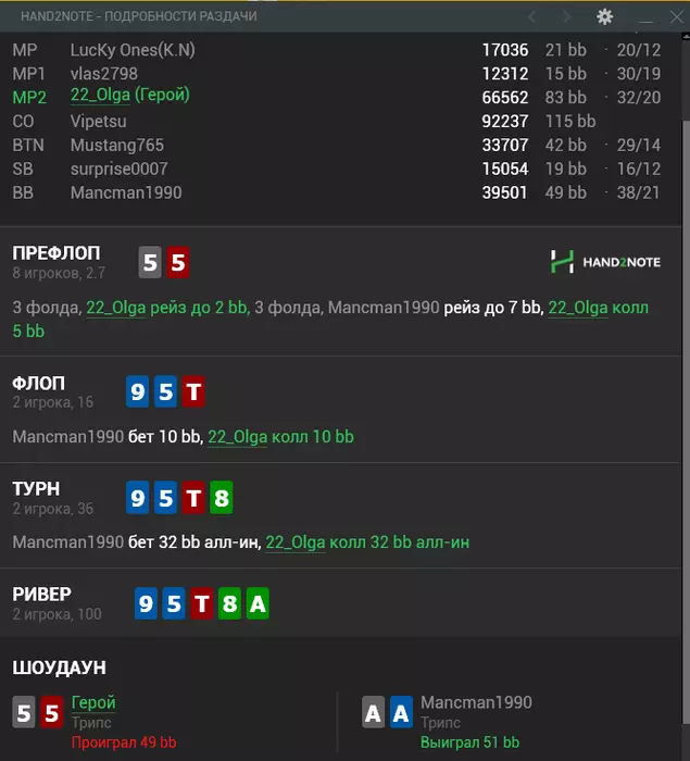 Обрати внимание на фразу: префлоп фолд я не вижу.