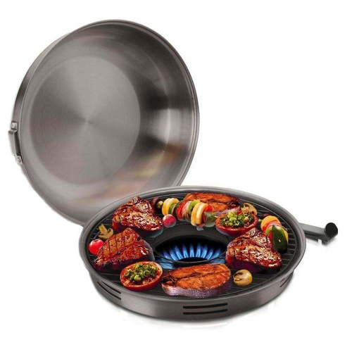 Кстати, у кого дома газ и живет в квартире, а побаловать себя охота блюдами на гриле, советую приобрести вот такую приблуду, называется сковорода газ гриль, с приготовлением на костре не сравнить, но лучше чем на электрическом гриле точно, вот и мы дома стейки на такой сделали, а раньше еще и часто шашлыки готовили.