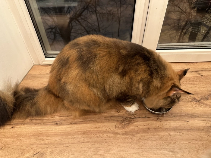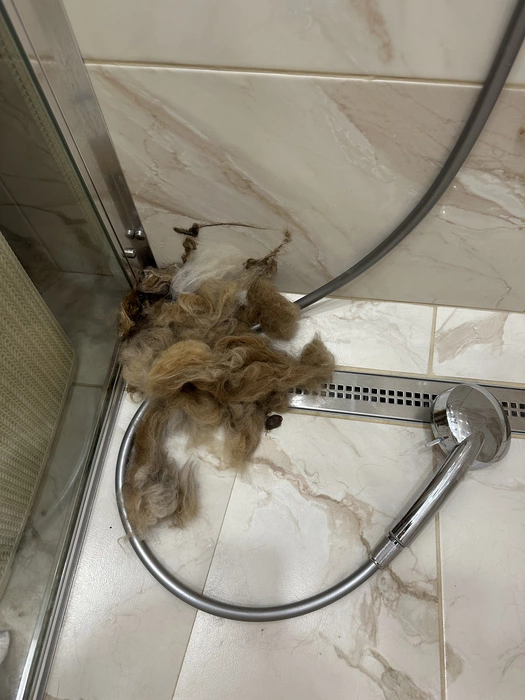 В декабре ее купала и вычесывала, а сейчас она уже снова свалялась)