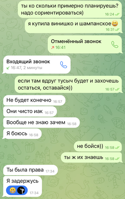Стою у раздевалки после пары, др, планов нет. Спонтанно зову всю группу к себе, а потом еще парней, с которыми общалась (межкурсовая тусовка из универа) и кто ж знал, что переться на академика янгеля всем окажется весело и люди реально придут, причем в итоге все, ну или почти! Сейчас такое совершенно невероятно, если ты не планируешь мероприятие за месяц. А я тупо позвала день в день.