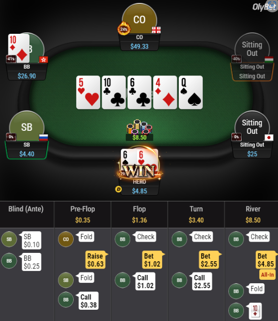 Я думаю не нужно обьяснять почему я рейзил префлоп чела с 55 впип и почему я подколил 4бет меньше х2.