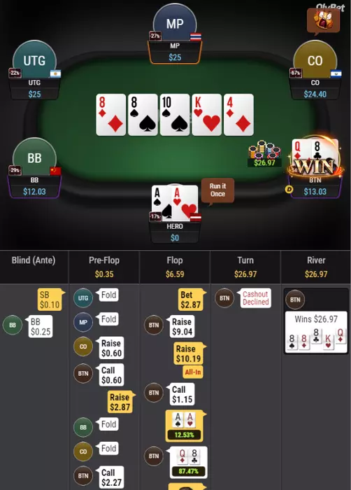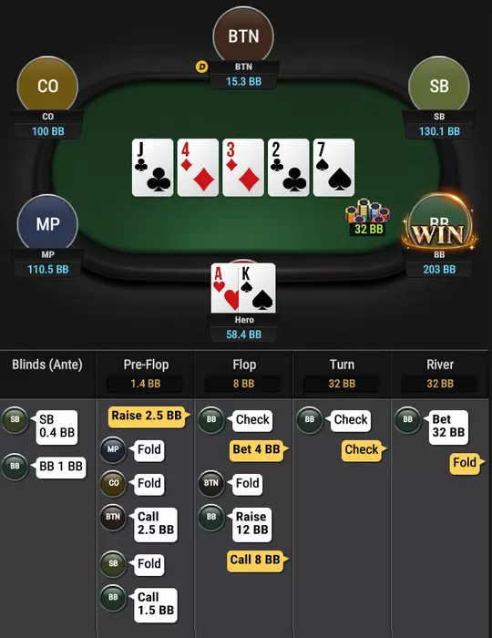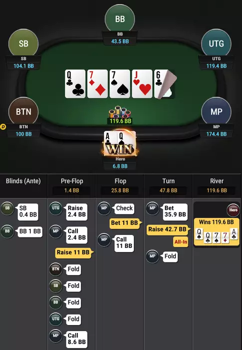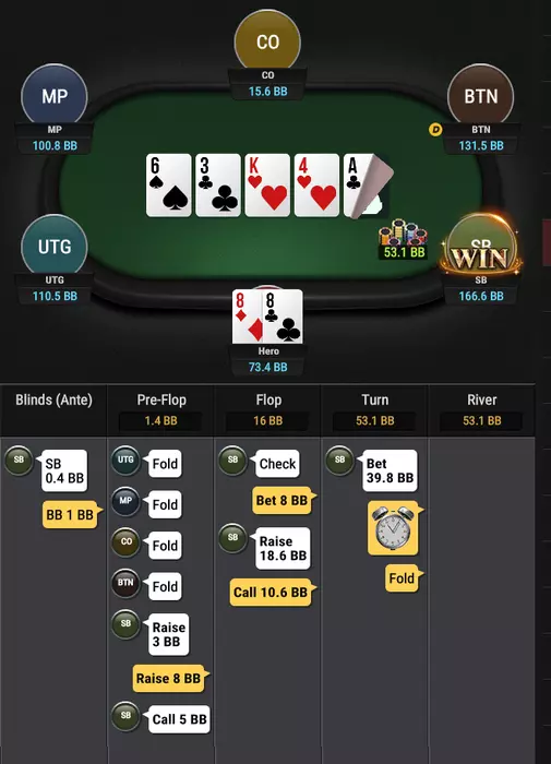 Даун на бб 3бетит мп на ТТ 2.5бб- 12бб и колит пуш 50+ и доезжает в 2 аута.