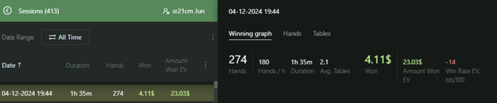 результат странный , по кассе +170 дол , по резам -150бб , но это из за разницы лимитов нл60 80 100.