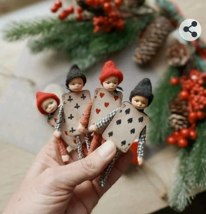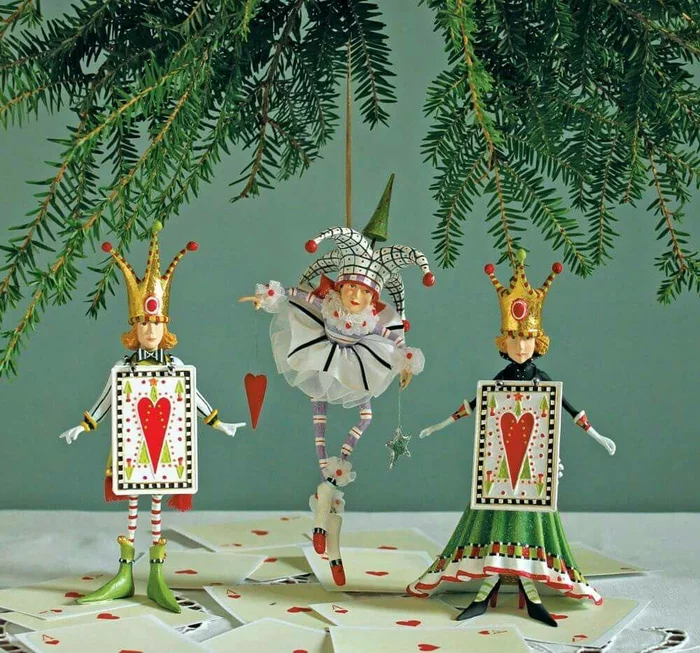 у нас небольшая ёлка стоит круглый год, включаем её, как торшер по вечерам. А в праздники и на дни рождения подарки под ёлку кладем :) такое безостановочное чувство новогоднего чуда в доме весь год. даже в голову не приходило, что могут быть игрушки в карточной тематике.