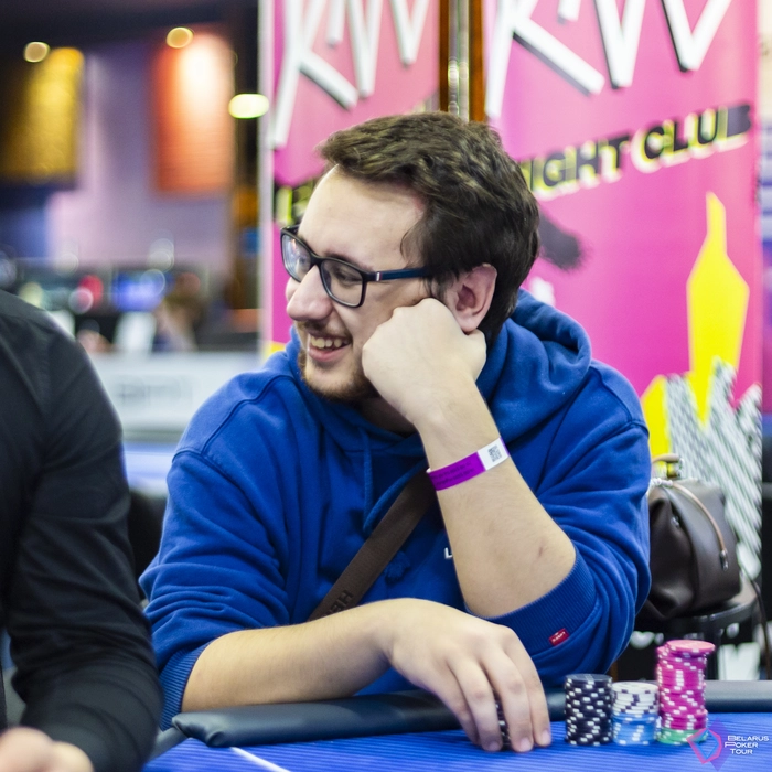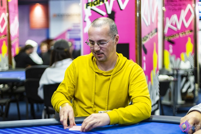 Второй вход у Максим Сковородника тоже не сложился. Сначала отдал половину стека за две раздачи. В конце концов подбил на ББ , попал на флопе во флеш-дро и выставился с тезкой Глушаковым. Глушаков на флопе собрал сет десяток, а терном доехал в каре.