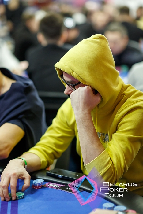 Тройной олл-ин организовали за вторым столом прямо перед перерывом. Первым запушил Бойтлер Кирилл (280к), заколлировал его Олексин Виталий, а на большом блайнде Артём Панасюк залетел третьим (260к).