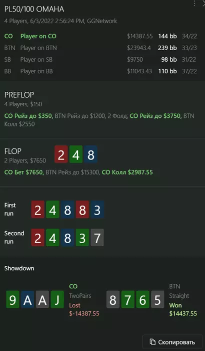 Ебать конечно они расстроились-))) Видеть стрит с флопа и ....