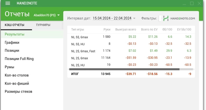 Да и в целом, я смотрю ты много зацикливаешься на деньгах, на бб/100 в разрезе 5-10 тыс раздач, не стоит на это обращать внимание, т.к. это не дистанция. лучше-сконцентрироваться на игре и на правильности принимаемых решений.