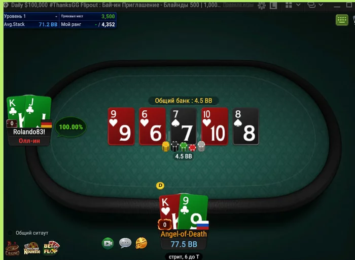 Довольно сложно шла сессия. Пару лютых куллеров наматали меня на - 2 баина. Стопнул. Завтра буду катать 4 стола. Поглядим. Одно ясно в такие часы нужно тайтово играть по картону.