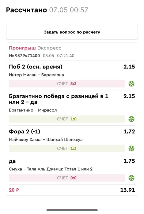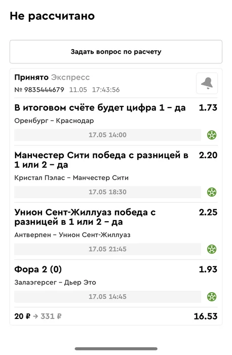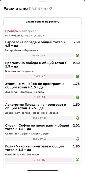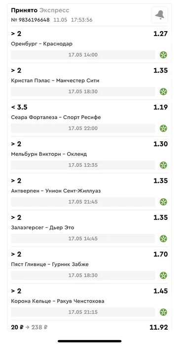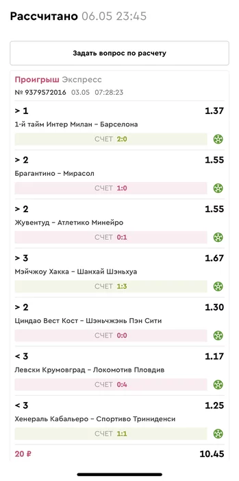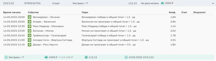 Проигрыш всех экспрессов недели на прошлой неделе! Публикую экспрессы недели за 12.05.25-18.05.25 !