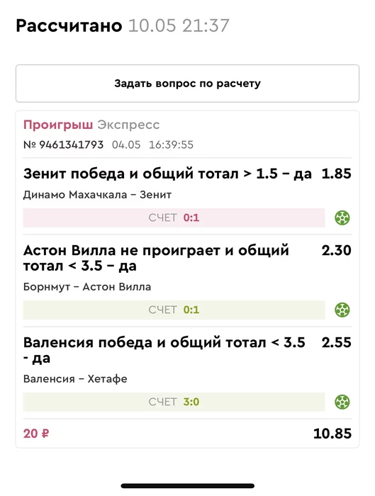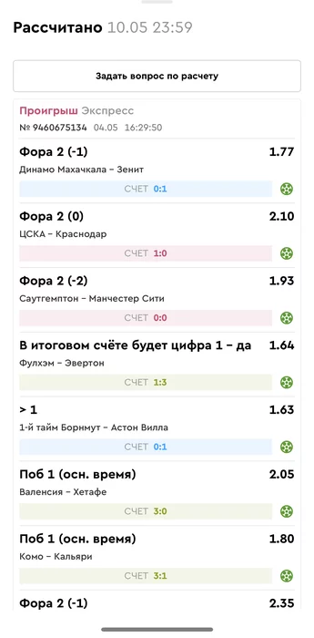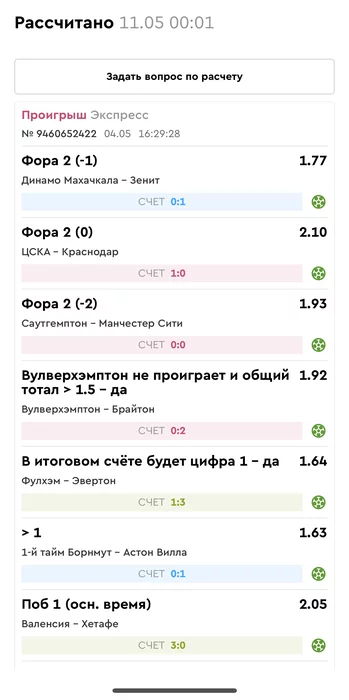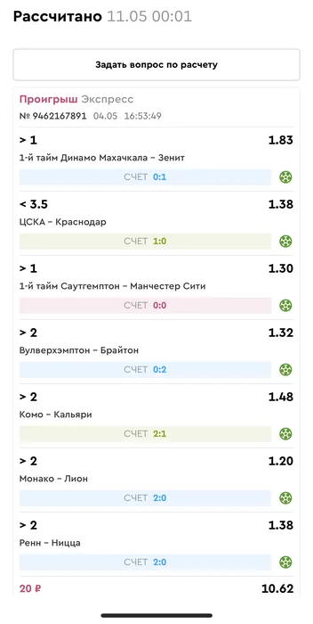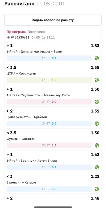 Проигрыш всех экспрессов недели на прошлой неделе! Публикую экспрессы недели за 05.05.25-11.05.25 !