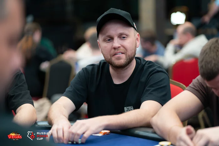 В следующей раздаче Денис Столяров запушил блайнд на блайнд, Виталий Некрасов на оставшиеся 5 bb уравнял с .