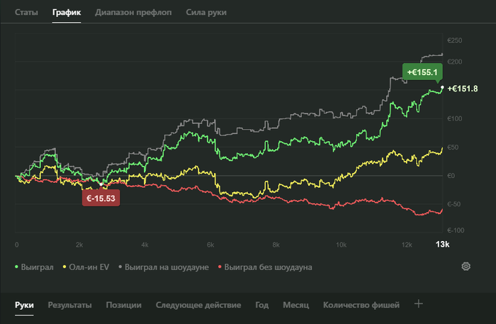 По количеству рук прям стараюсь выделить время. И да, я все ещё нитяра, сколько бы обучающего видео я не смотрел, шире открываться и 3бетить при игре на 6 столах не получается