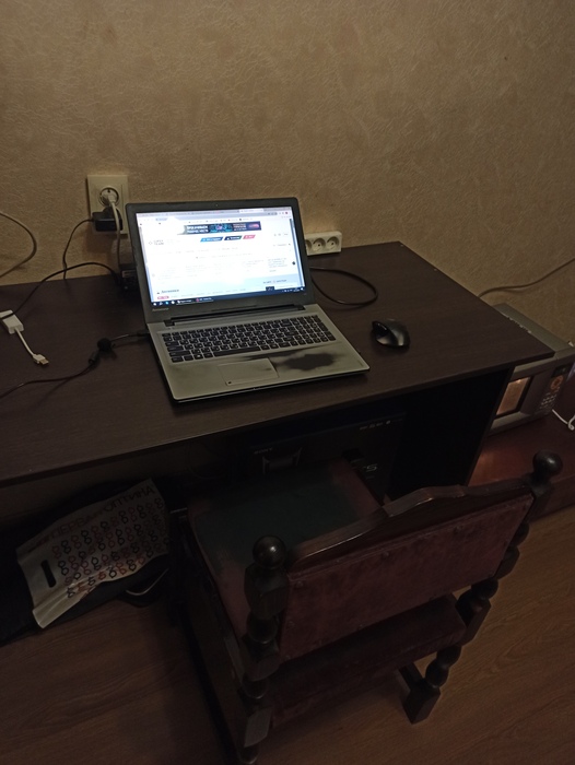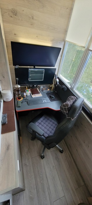 Показал свое рабочее место. Прям так и хочется его в конкурс от джипси записать, стул из икеа ему был бы кстати 😁