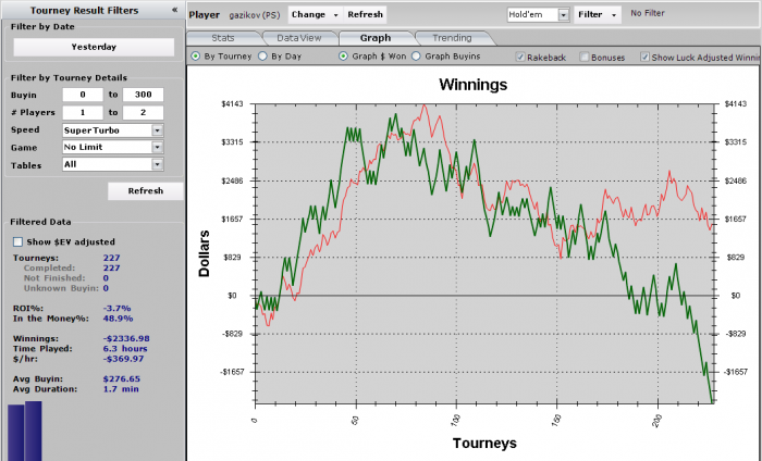 У меня появился новый спарринг-партнёр поляк ijustgamble,прежние дуэлянты увы меня покинули(flippetyflop,xereles,chadders),оппонент вполне достойный я пока с ним в плюсе,но по EV сильно перебрал,даже как то неудобно )