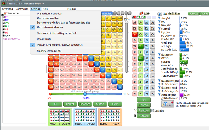 Далее жмем фильтры, и мы видим что матрица комбинаций (с лева) изменилась, в соответствии с фильтрами