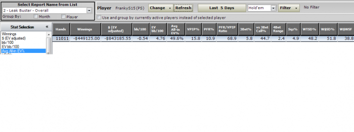 Зайди в Reports, сравни ev chips и winnings, и bb/100 с ev bb/100.