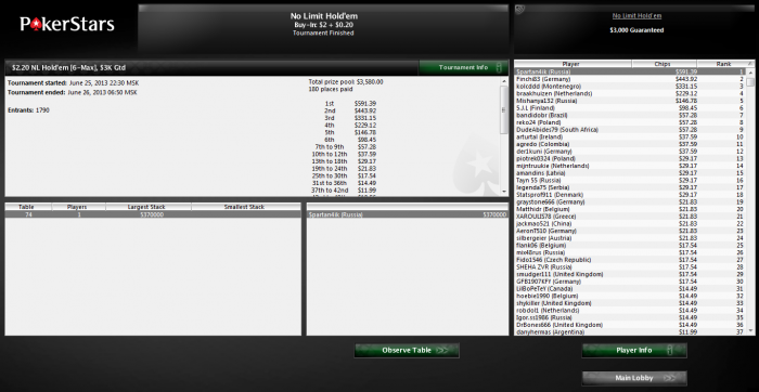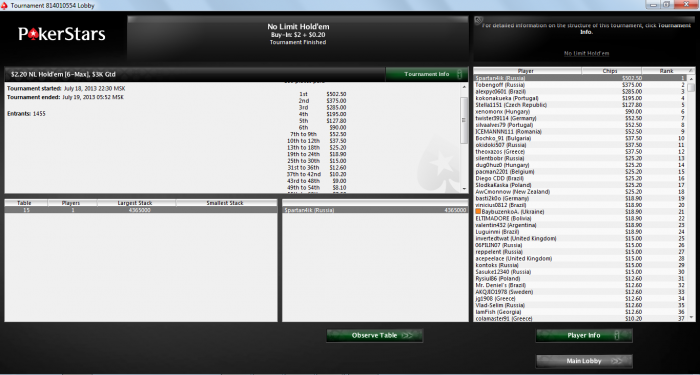Tournament started 2013/06/25 18:39:00 MSK [2013/06/25 10:39:00 ET]