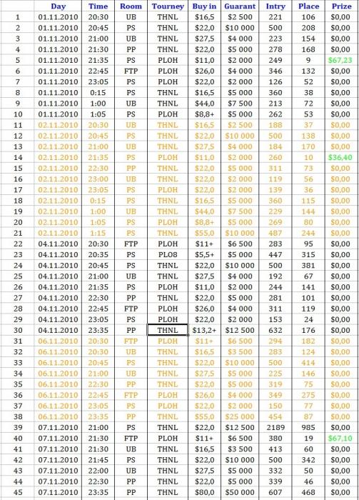 Что происходит, когда я немного заношу? Я обратил на это внимание, потому что просвечивается какая-то закономерность. Собственно, не происходит ничего. В смысле хорошего. Я заношу на одном руме, а наказывать меня начинают все. Словно они по мейлу списываются и говорят там друг другу. "Он немного занес, пора у него отнимать ребята". Немного я поднимаю банкролл, через неделю смотрю, а он снова упал. Я знаю, можно подумать, что я лезу на какие-то лимиты повыше, но ничего подобного. Я даже и турниров то не добавляю почти! Так, один-два. Я к тому, что никак мне не удается нарастить как следует банкролл. Уже надоело плавать в этих низко-средних лимитах. UB совсем обнаглели. Творит со мной, все что пожелает. Там вообще ничего не получается последнее время. Хотя раньше я очень любил этот рум. В ноябре вообще за 38 турниров 3 итм!!! и все двухзначные. . Ладно выговорился. Все бывает, будем и дальше катать, ничего не остается пока... Воскресение, тащите все!!!!!!!!!!!!!!!!!!!!!!!!!!!!