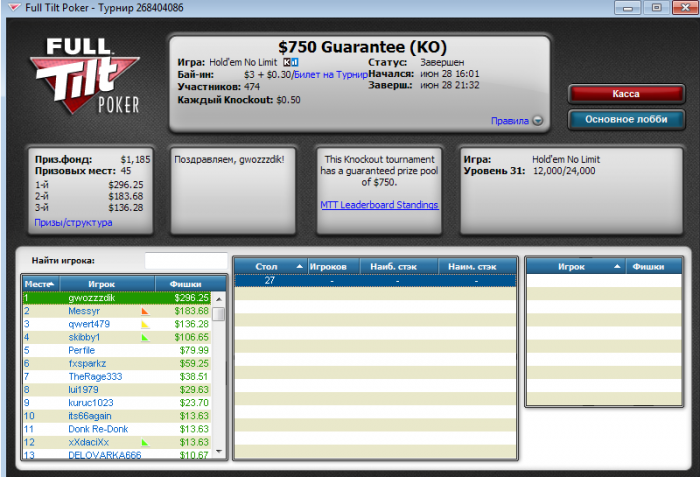 Poker Stars $1.08+$0.27+$0.15 No Limit Hold'em Tournament - t75/t150 Blinds - 8 players -