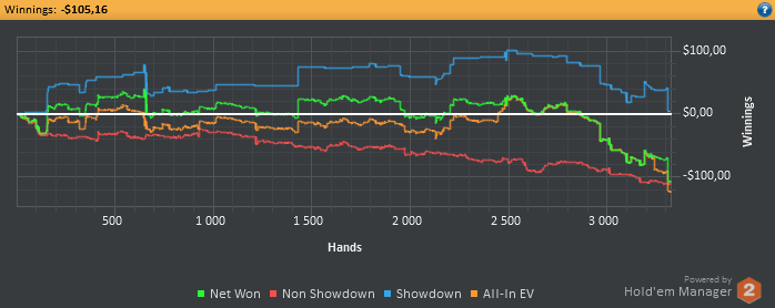 4к рук, опп 20/17 3бет 6.6; Cbet flop 67; Agr 3.1 / 1.7 / 1.6; Check-call 25: WTSD 20 WWSF 44