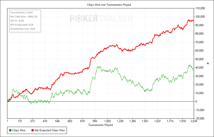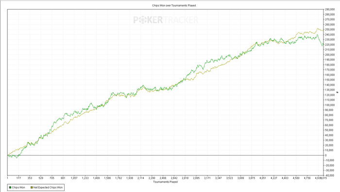 Я, собственно, хотел посмотреть, как меняется чипЕВ у плюсового игрока в момент, когда диспа пригибает его. У меня на семерках за те же 2К туриков — 46 шашек с турна, но недодача вот такая: