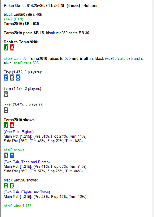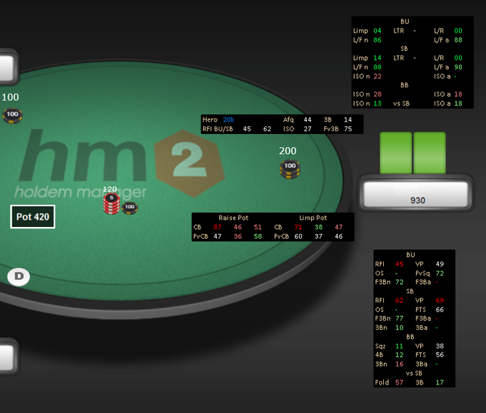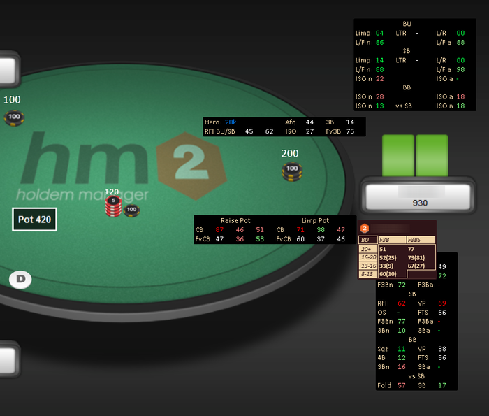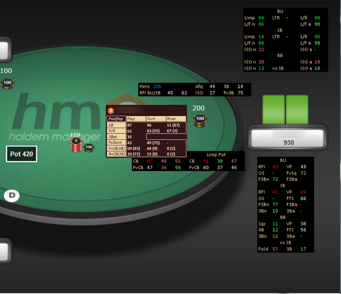 Наконец-то, допилили Spin Hud для HM2. Кучу времени отнял. Спасибо ребятам из "Мастерской статистики", что смогли обойти все баги данного софта и выпустить достойный продукт. Краткое описание К каждому префлоп стату по позициям прикреплен попап с действием по уровню эффективных стэков, что в итоге значительно облегчает игру при мультитейблинге, потому как громоздкие хады с большим количеством статов мешают комфортной игре. А главное, больше не нужно переключать хад во время 3 макс и хедз-ап стадии. Кроме того был разработан цветовой рейнж для каждого стата в определенной позиции с учетом тенденций игрового поля. Ниже о плюсах нашего хада в сравнении с конкурентами: • Наличие всех, необходимых статов • Компактность, вся дополнительная информация помещена в попапы • Универсальность: подходит как для 3 макс стадии так и для хедз-ап. • Цветовой рейнж статов с учетом тенденций игрового поля • Удобство при мультитейблинге • Поддержка продукта Скриншоты хада (открыть в доп. окне или нажать на картинку, для лучшего качества): Общий вид