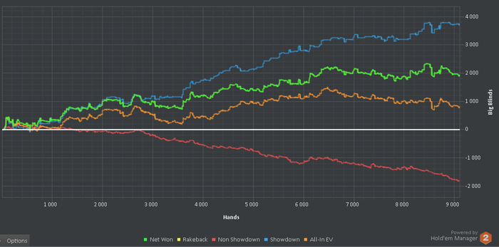 А с покером все достаточно хорошо. Покатываю себе мелкие румы. Изучаю пло. Играю не слишком много, но больше в свое удовольствие. Когда винрейт высок, то появляется удовольствие от процесса, да).