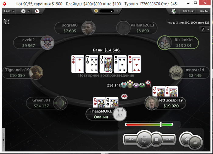 1 fold, Hero calls t600, Lexshcodavod calls t300, Lotus909 checks