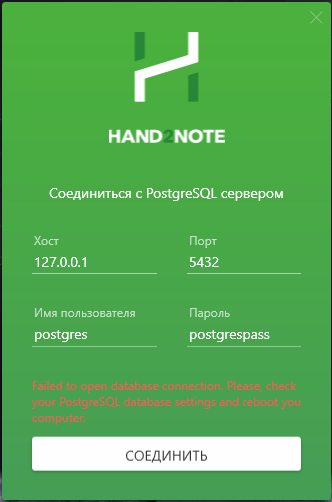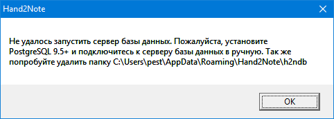 Доброго времени суток! При запуске Hand2Note возникает ошибка Пароли перепробовал все, postgreSQL установил и все равно Что делать ? Может кто то сталкивался