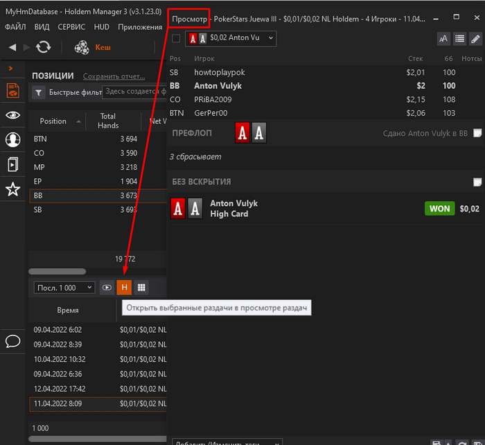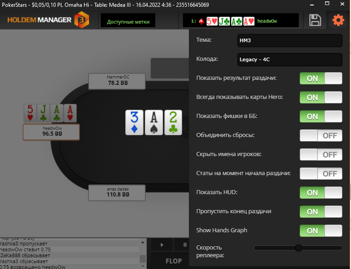 Всем привет. Помогите настроить hm, чтобы он хад не выводил, а писал историю раздач за сессию. Сейчас очень криво пишется. Из условных сыгранных 500 раздач, записывается всего 100. Помогите решить проблему.