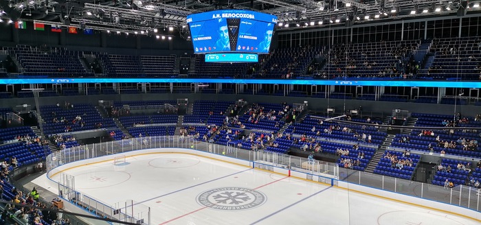 Особенно понравился хоккей. Матч получился великолепным по напряжению, накалу. Впрочем, матчи между Барысом и Сибирью довольно часто проходят в таком ключе. Стадион понравился, чем-то похож на новый стадион в Новосибирске, второй ярус только показался поменьше, а вот кресла больше понравились в Астане.