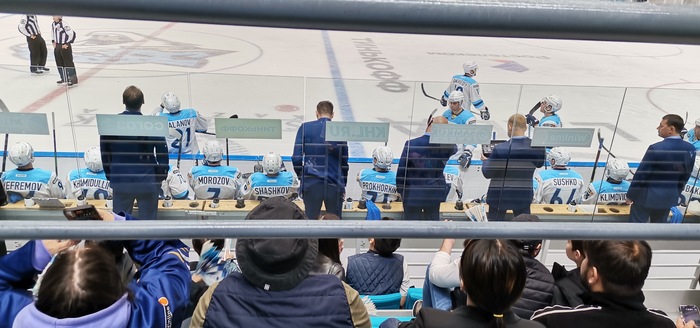 Сибирь в итоге победила в овертайме 5:4, проигрывая по ходу встречи 0:3. Во время матча, в перерывах общались с болельщиками Барыса, обменивались мнениями, фотографировались. Поддерживали Сибирь как могли. Во время предматчевого исполнения гимна, проорали традиционное: Славься Сибирь! Не знаю, услышали ли игроки и тренеры, но зрители с первого ряда оборачивались и приветствовали нас. После матча игроки Сибири тоже благодарили нас за поддержку. В общем, выезд удался.