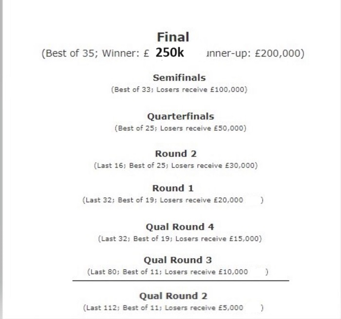 Призовые и сетку можно посмотреть здесь: https://www.snooker.org/res/index.asp?event=1460