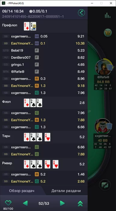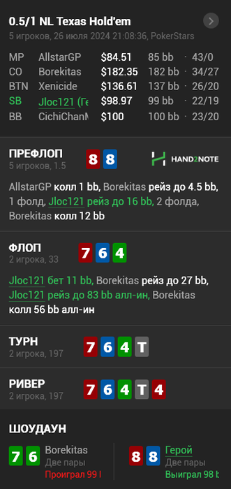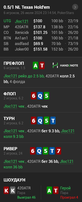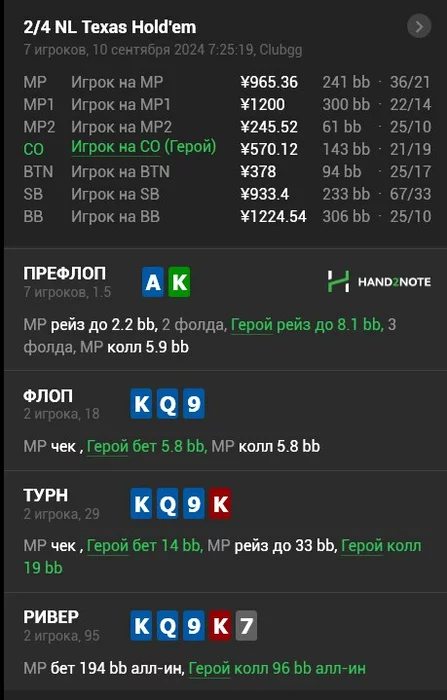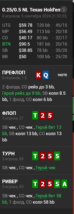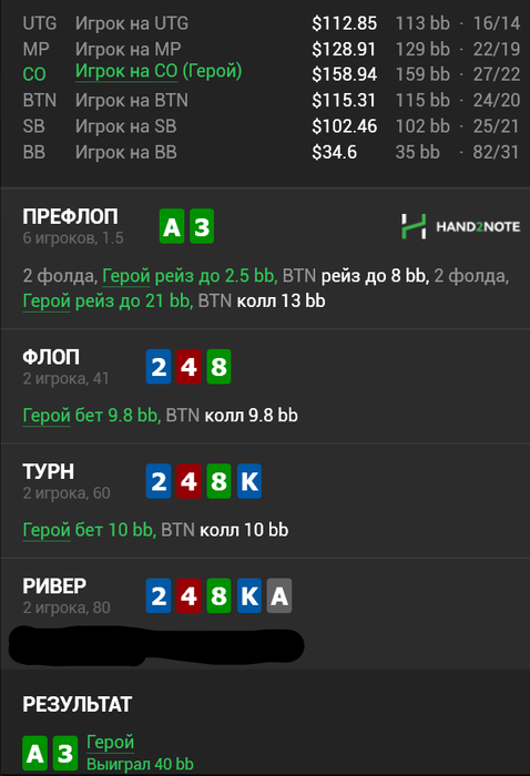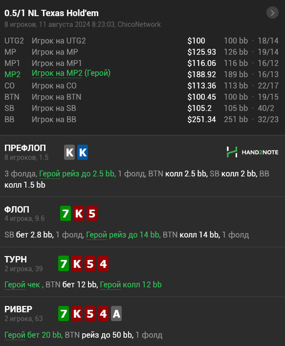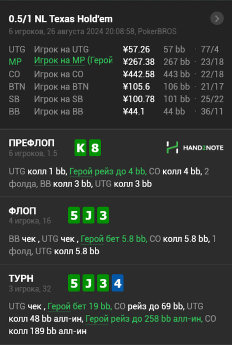 OGamee, рег здесь будучи в дипах рейзить терн будет только флеши, имея около нуля блефов. Причём флеши слабее К-хай не будет играть рейз/колл пуша в 260бб дипах никогда.