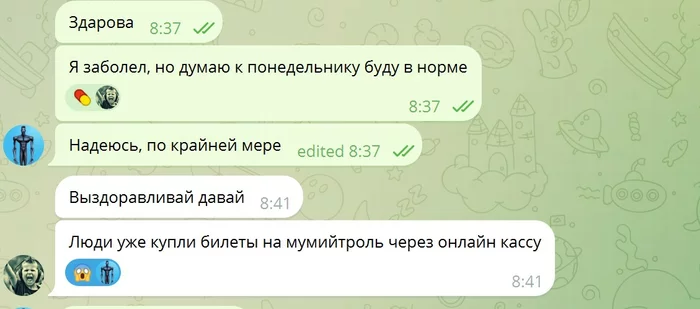 - Открыл в себе вокальные таланты и начал петь в караоке как Мумий-Тролль, по мнению того же человека