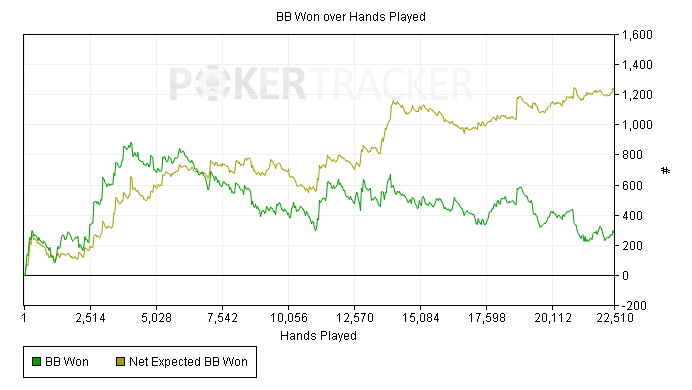 Судя по твоему графику ты играешь на 25NL спускайся на пару лимитов ниже и 22к рук это не дистанция))))))