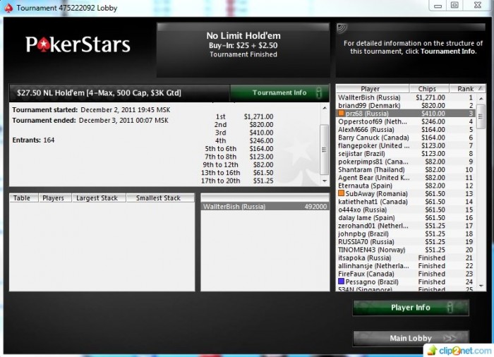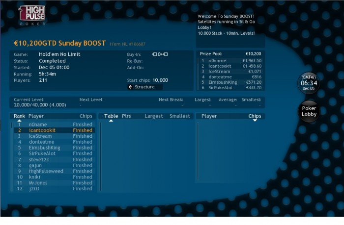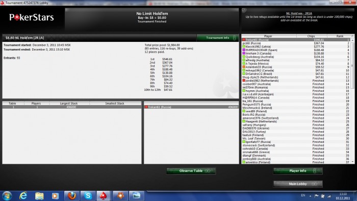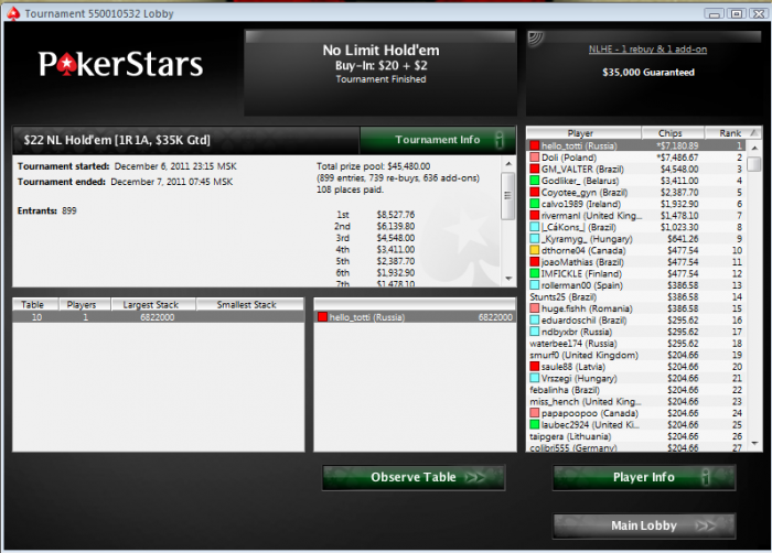 Tournament #34471544 $27.50 + $2.50 - Table #13 (Real Money)